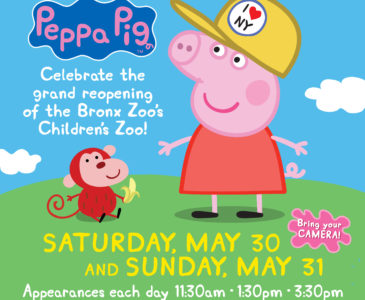 This weekend launches the grand re-opening of the Bronx Zoo Children's Zoo and Peppa Pig will be there to celebrate. This Saturday May 30 and Sunday May 31, Peppa will be there to greet her biggest fans at 11:30 am, 1:30 pm and 3:30 pm. Along with meeting Peppa and taking pictures, children can also create their own Peppa mask, pick up a free bookmark, and learn about the animals at the zoo! My little girls are huge Peppa fans and we will be ...